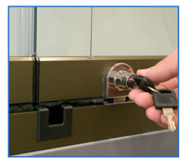 Consiste en un pomo que al ser girado acciona los pestillos, y da la opción de abrir la Cortina de Cristal desde ambos lados.