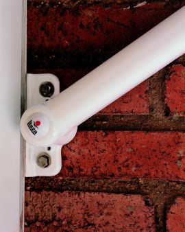 Especialmente diseñado para que vaya aminorando la tensión a medida que el toldo va enrollando, a fin de no someter ni a la lona ni a los soportes, a fuerzas innecesarias cuando el toldo esta recogido.